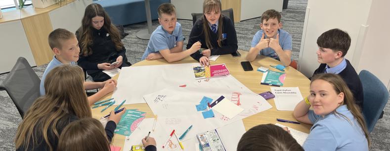 Young people participating in workshops at Transport for Wales HQ, Pontypridd
